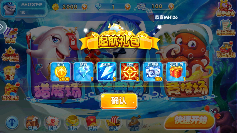 - 隐藏福利礼包 游戏内隐藏任务或节日彩蛋可能触发隐藏礼包码,奖励丰富。 需玩家主动探索,如查找特定海域或使用特定炮台击杀BOSS鱼。